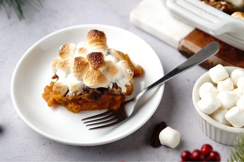 - Add the marshmallows:Remove the casserole from the oven and evenly distribute the mini marshmallows over the top. Return to the oven and bake for an additional 5-10 minutes or until the marshmallows are golden brown.